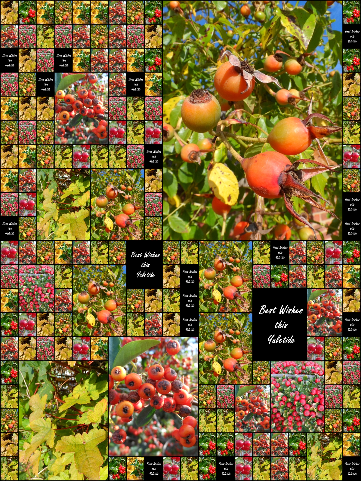 A photo collage showing what a splendid year it has been for berries and fruits. The layout is by a Python script that created a .svg file for conversion into a .jpg file using Inkscape. |